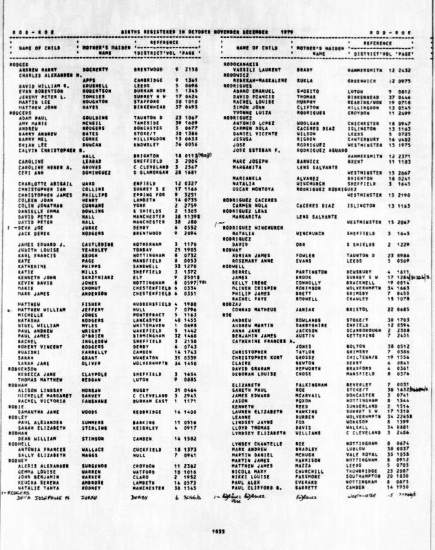 Birth Register Martin Lee RODGERRegistered at Stafford on October 1979 Volume 30 Page 1010 Mothers Maiden Name HOUGHTON