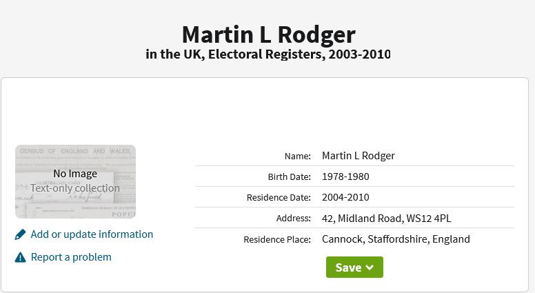 Ibid. 42, Midland Road, Cannock "2004–2010" : Source UK, Electoral Registers, 2003-2010