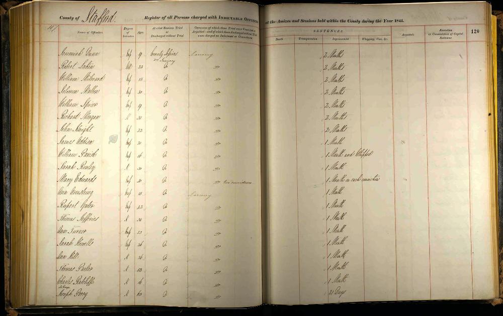 Attachments LAKIN Robert Born/age 1821: on/during 3 January 1844 Imprisonment Robert appeared before Staffordshire County Sessions For Larceny and was sentenced to 2 months imprisonment Source England & Wales, Criminal Registers, 1791-1892