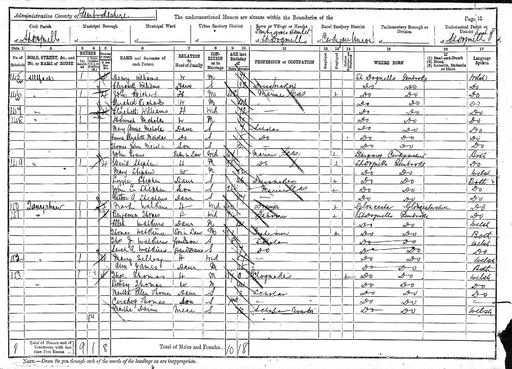 Wales Census 5 April 1891 : 151 Tanyrhiw Saint Dogwells Pembrokeshire District Cardigan : Sub District Cardigan Parish St Dogmells Emuneration District 12 Piece 4544 Folio 19 Page Number 18 18