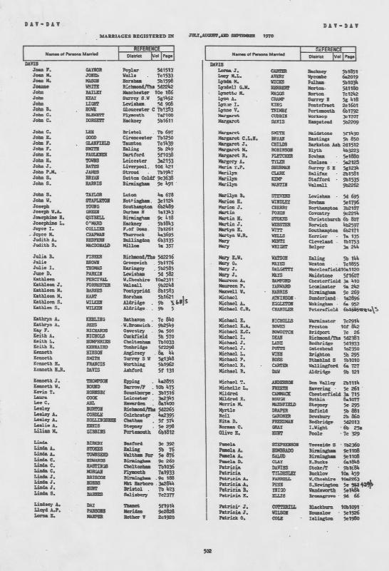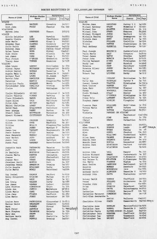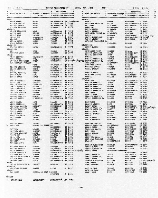 Ibid. Pamela Marie WILKINRegistered at Walsall on June 1981 Volume 34 Page 0783 Mothers Maiden Name DAVIS