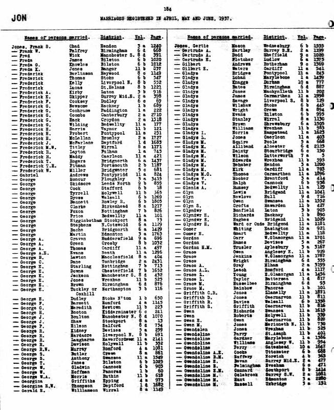 Wedding Register James LOHAN and Gladys JONES : Registered at Marylebone During April 1937 : Volume 1a : Page 1439
