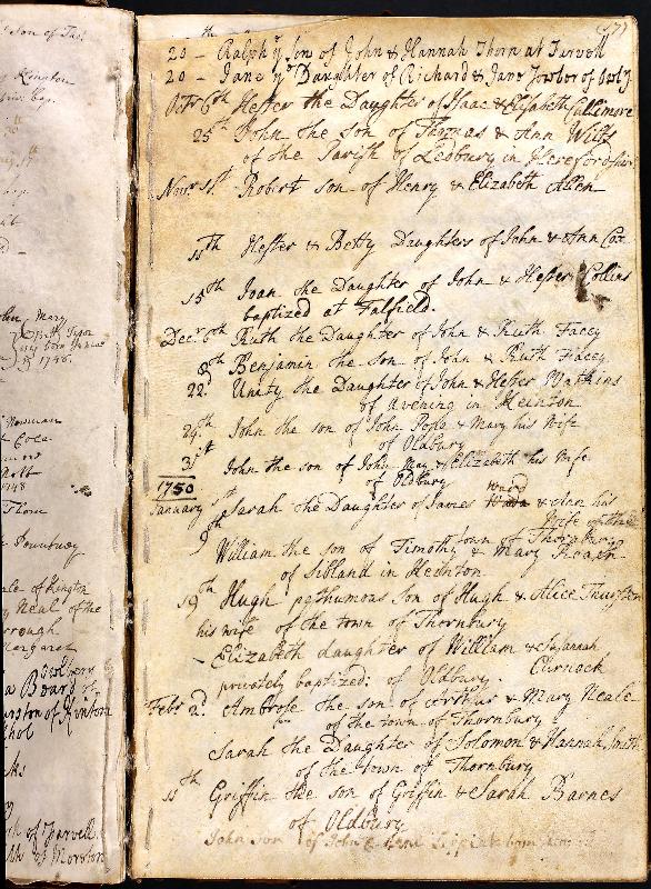 Baptised: Unity WATKINS Born 22 December 1749 of Avening, Gloucestershire Was Baptised on 22 December 1749 at Thornbury, Gloucestershire, England Father John Watkins Mother Hester Watkins (Hester Elizabeth SINDRY) Source: Gloucestershire, England, Church of England Baptisms, Marriages and Burials, 1538-1813