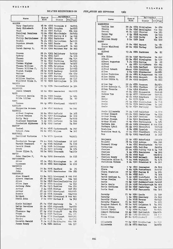 Death Register Arthur Edward WARD Born 23 June 1905 : Died September 1969 Registered at Cambridge Volume 4a Page 570