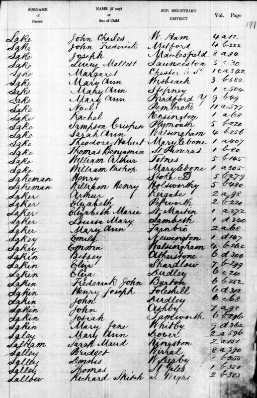 Birth Register Eliza LAKINRegistered at Dudley on September 1855 Volume 6c Page 24