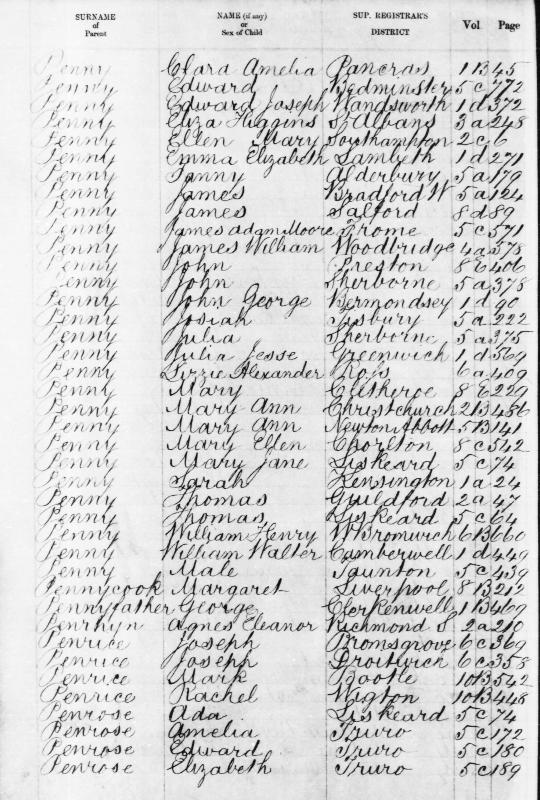 Birth Register Edward Joseph PENNYRegistered at Wandsworth on June 1858 Volume 1d Page 372