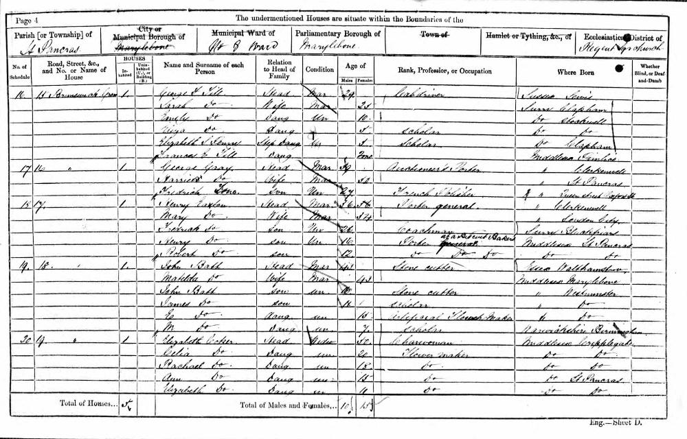 England Census 7 April 1861 : 15, Brunswick Grove St Pancras Middlesex Class RG9 Piece 105 Folio 46 Page Number 4 GSU Roll 542574 4