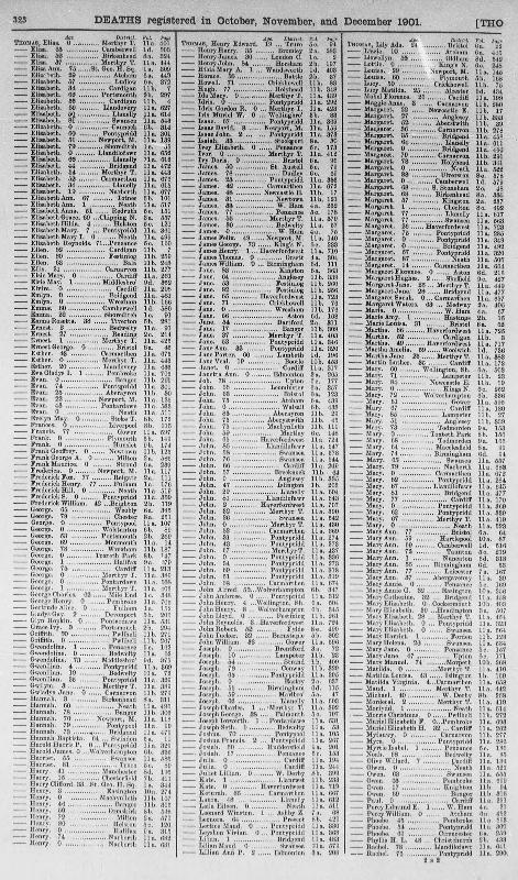 Death Register Emlyn THOMAS Born 1 February 1901 : Died December 1901 Registered at Bridgend Volume 11a Page 461
