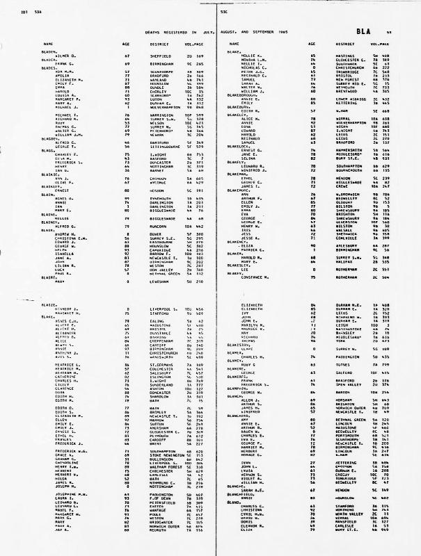 Death Register Iris GERRY (BLAKEMORE) Born 29 November 1918 : Died July 1965 Registered at Walsall Volume 46 Page 605