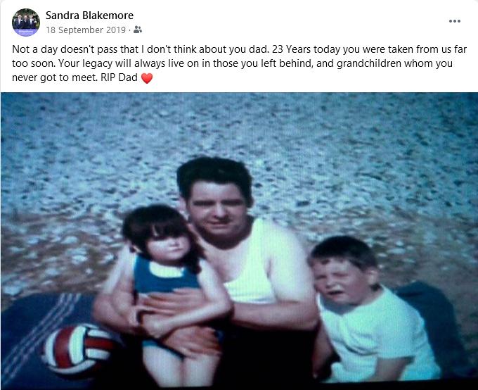 Personal Knowledge Graham BLAKEMORE Born/age 5 March 1942 on/during 18 September 1996 Death Details Shown on facebook Provided by the Personal knowledge of Sandra Ann BLAKEMORE (DEELEY)