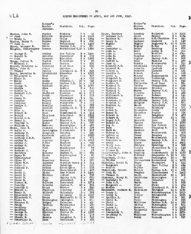 Ibid. Graham BLAKEMORERegistered at Cannock on 5 March 1942 Volume 6b Page 797 Mothers Maiden Name GERRY