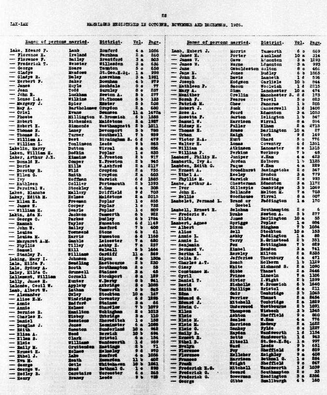 Wedding Register Samuel LAKIN and Beatrice HILL : Registered at Walsall During October 1926 : Volume 6b : Page 1464