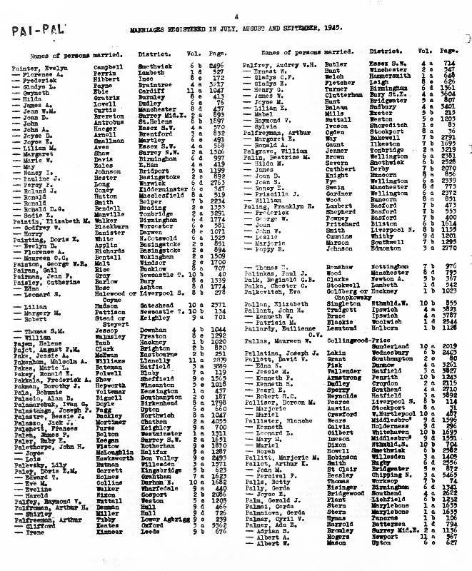 Wedding Register Jacob Joseph PALLATINA and Emma LAKIN : Registered at Wednesbury During July 1945 : Volume 6b : Page 2403