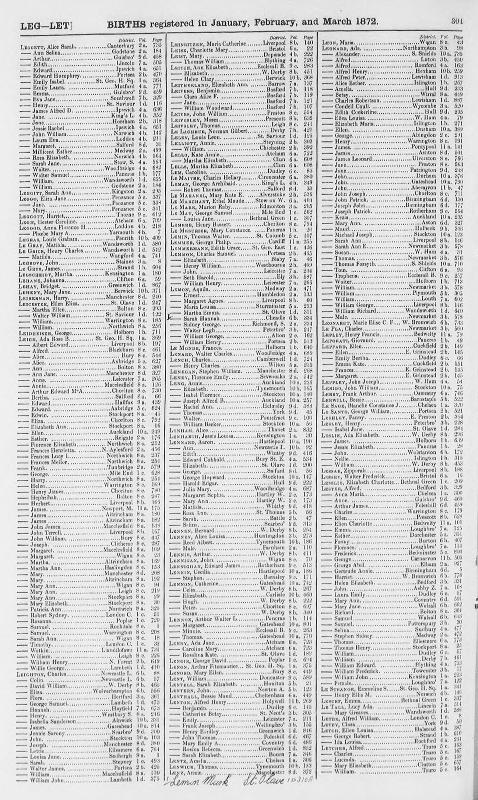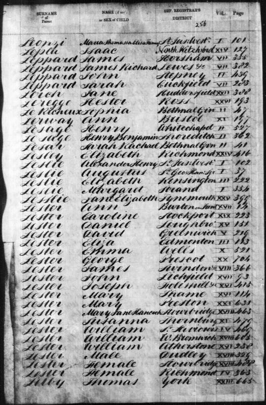Birth Register William LESTERRegistered at West Bromwich on March 1840 Volume 18 Page 605