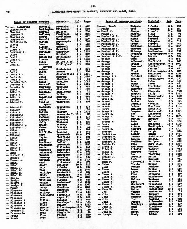 Wedding Register John Richard James WARD and Ellen TURNER : Registered at Edmonton During March 1922 : Volume 3a : Page 754