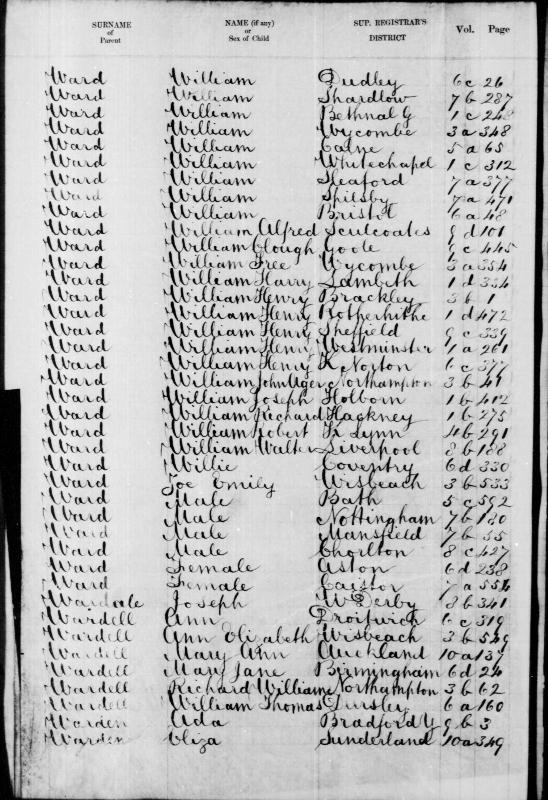 Birth Register William WARDRegistered at Bethnal Green on July 1855 Volume 1c Page 248