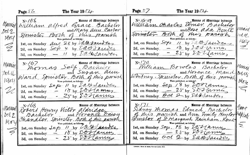 William Georgw WARD and Susan Emmeline DAVIS; Southwark, Surrey, England, United Kingdom8