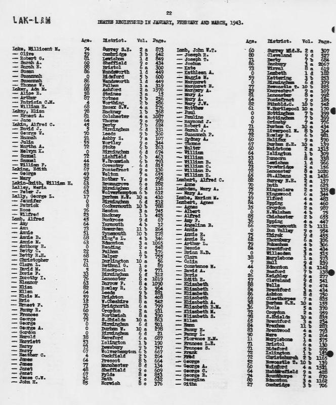 Death Register Samuel LAKIN Born 17 April 1898 : Died 19 January 1943 Registered at West Bromwich Volume 6b Page 463