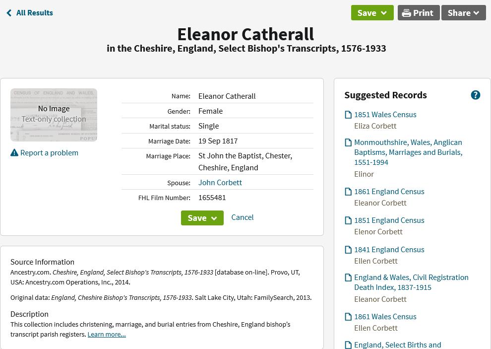 Wedding Details John CORBETT and Eleanor CATHERALL : at Chester, Cheshire During 19 September 1817