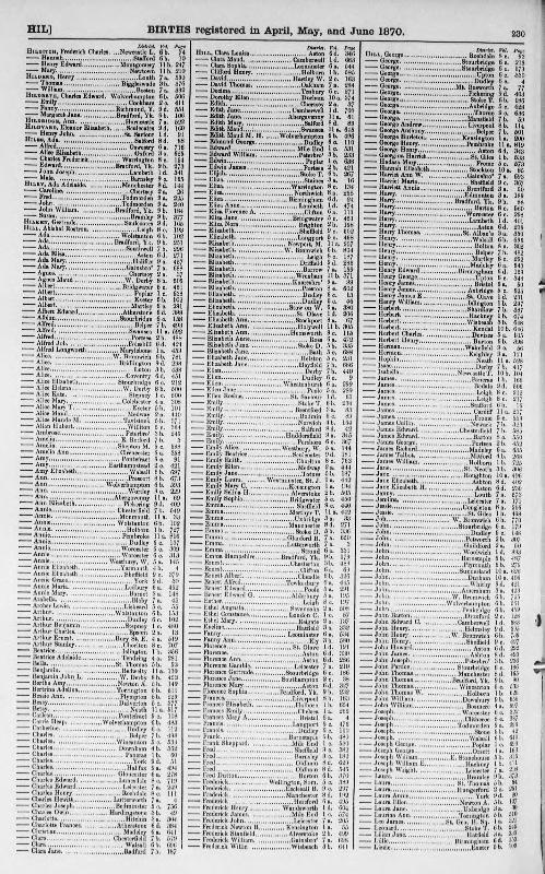 Birth Register Henry HILLRegistered at Walsall on June 1870 Volume 6b Page 696