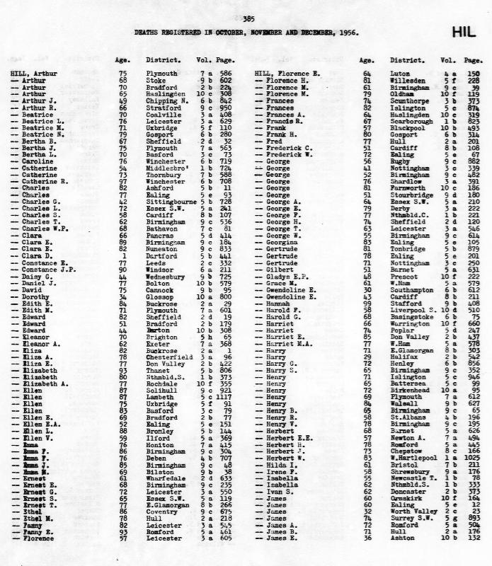 Death Register Henry HILL Born June 1870 : Died December 1956 Registered at Walsall Volume 6b Page 627