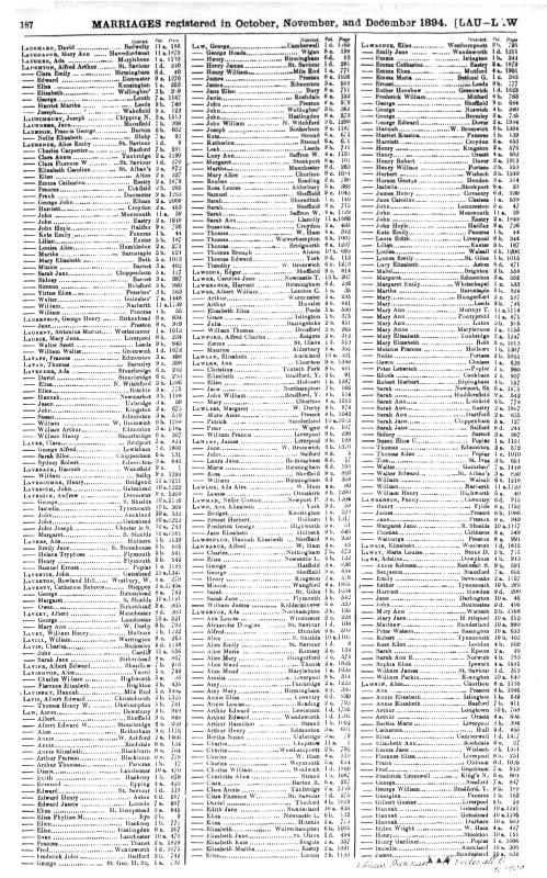 Wedding Register Henry HILL and Louisa LAWRENCE : Registered at Walsall During December 1894 : Volume 6b : Page 1205