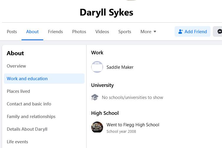 Occupation Daryll SYKES Born/age 30 March 1991 : Date 2008 Saddle Maker Source Facebook entry by Daryll SYKES