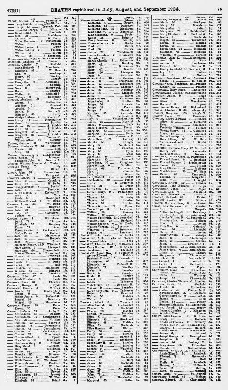 Death Register Ann SHARPLIN (CROSSMAN) Born 1828 : Died September 1904 Registered at St Olave Volume 1d Page 155