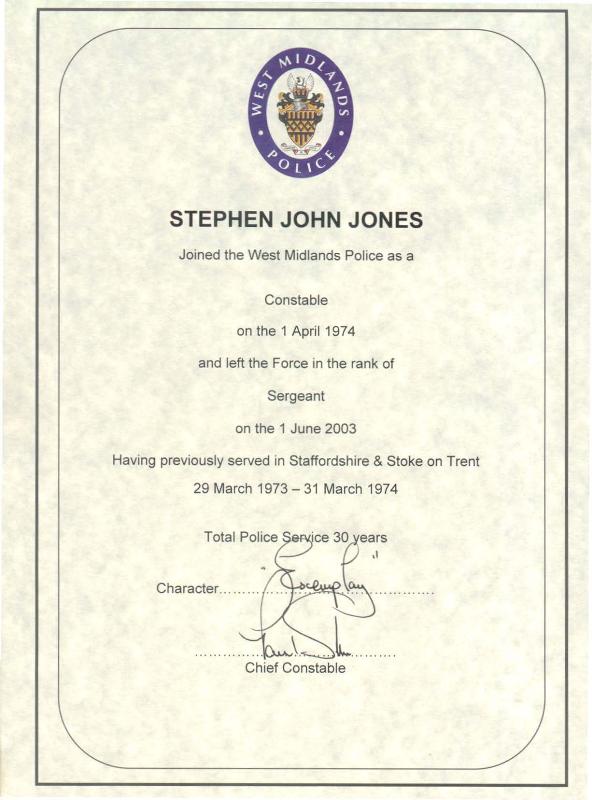 Awards Stephen John JONES (29 March 1954) Passed Police Promotion Examination to Rank of Sergeant at West Midland Police on 1 November 1975 ; Source - Stephen John JONES, also Service Record