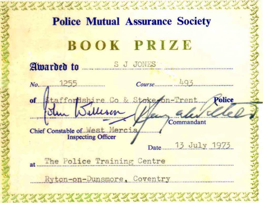 Awards Stephen John JONES (29 March 1954) Awarded A Book Prize for coming top of the course at Police Training Centre, Ryton on Dunsmore, Coventry, Warwickshire on 13 July 1973 ; Source - Stephen John JONES