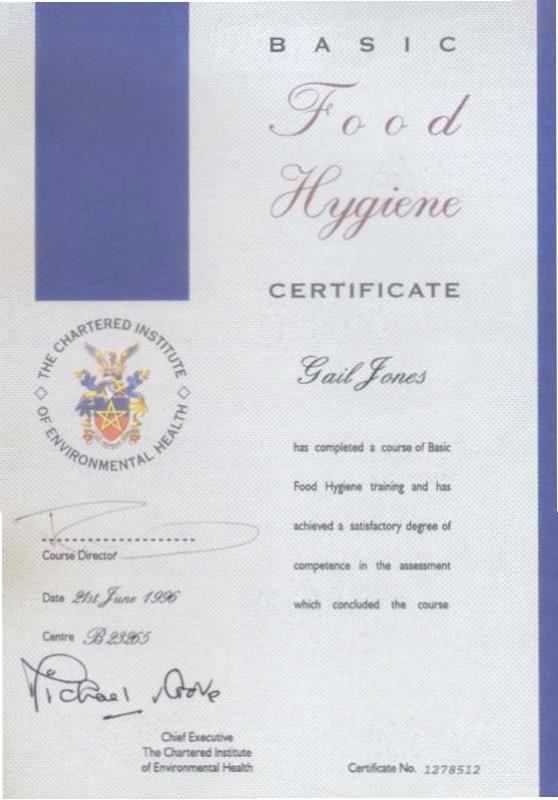 Ibid. awarded certificate in Basic Food Hygeine at Barr Beacon School, Old Hall Lane, Aldridge on 21 June 1996 ; Source - The Chartered Institute of Environmental Health Reference Certificate No 1278512
