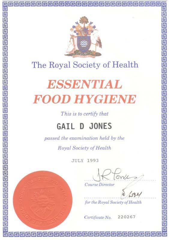 Awards Gail Denise BEMBRIDGE (JONES) (30 September 1955) Awarded certificate of Essential Food Hygiene at Barr Beacon School, Old Hall Lane, Aldridge on July 1993 ; Source - Royal Society Of Health Certificate No 220267