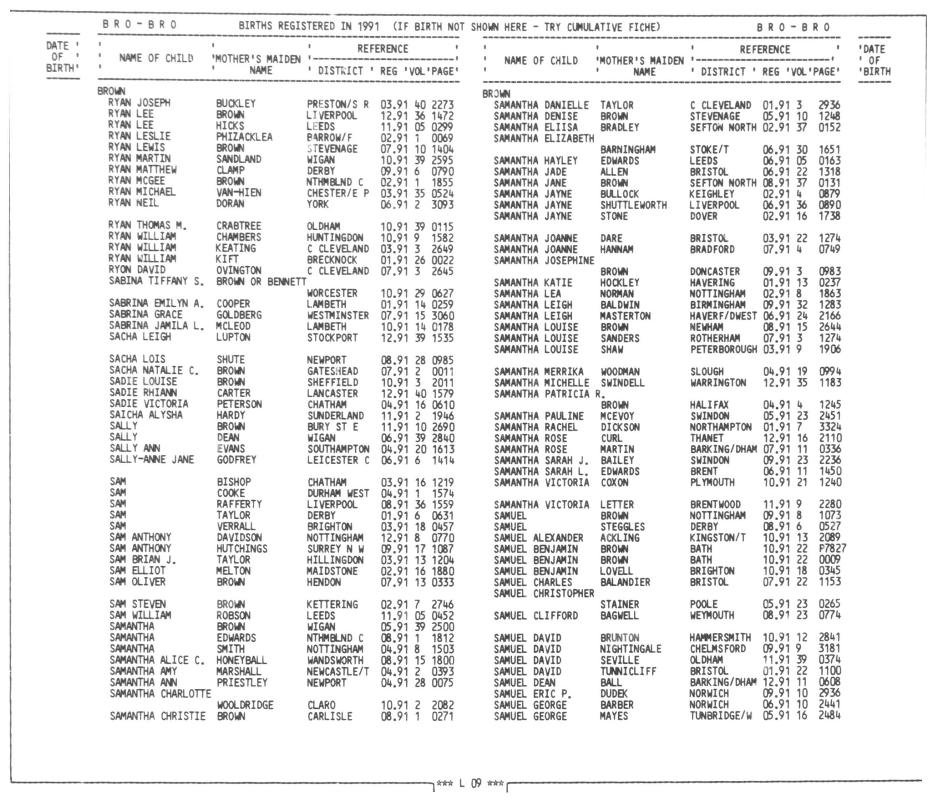 Ibid. Samantha Leigh BROWNRegistered at Birmingham on 24 August 1991 Volume 32 Page 1283 Mothers Maiden Name BALDWIN