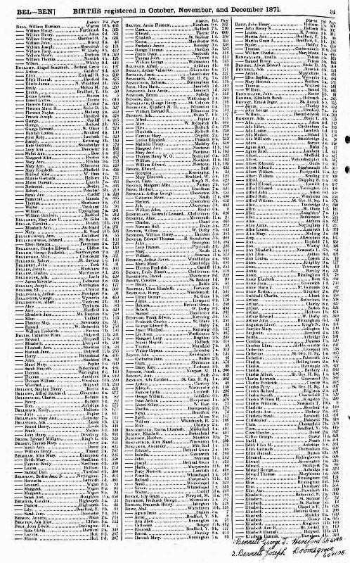 Birth Register Rebecca BEMBRIDGERegistered at Birmingham on 16 October 1871 Volume 6d Page 136