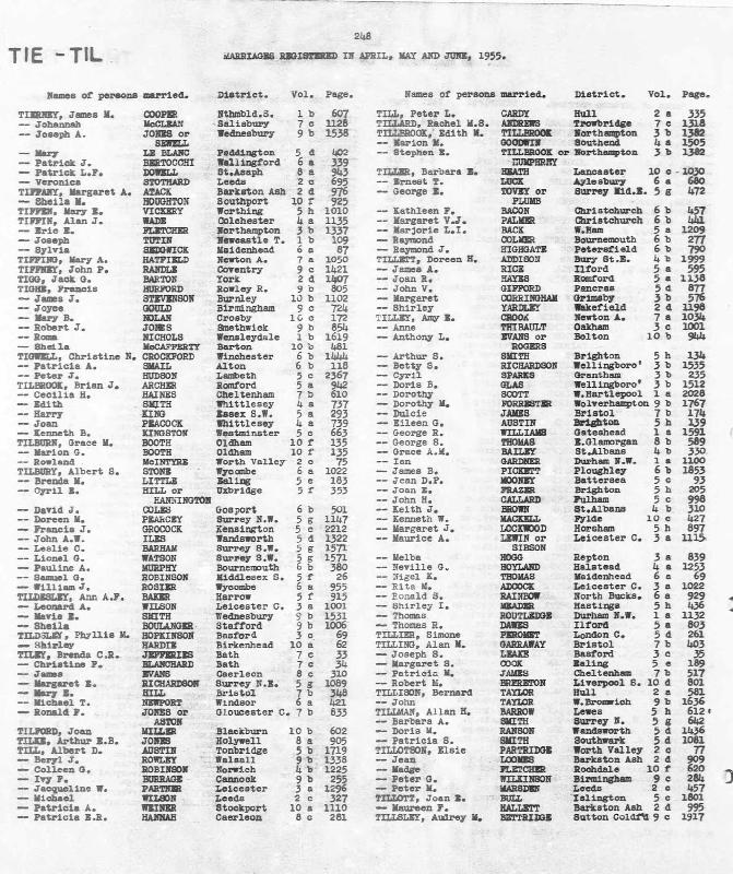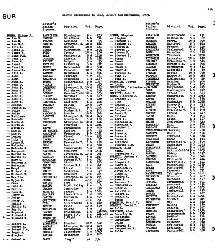 Ibid. Hazel BURRAGERegistered at Sutton Coldfield on July 1959 Volume 9c Page 1805 Mothers Maiden Name TILL