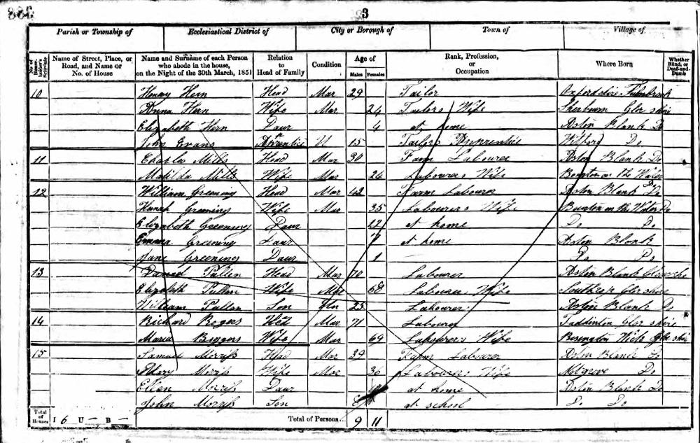 England Census 30 March 1851 Taddington Gloucestershire District Northleach : Sub District Bibury Parish Aston Blank Emuneration District 18 Piece 1969 Folio 388 Schedule 14 Page Number 3 3