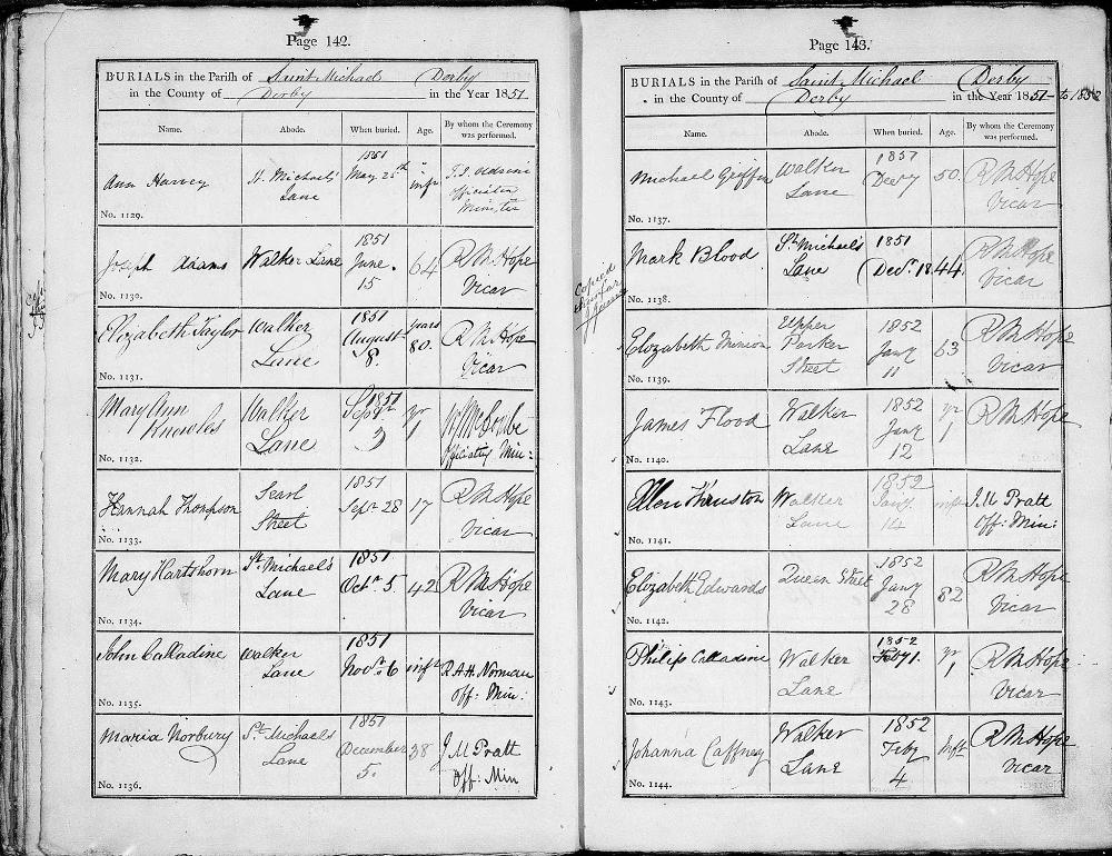 England Census 30 March 1851 : 6/13, Walker Lane Derby Derbyshire District Derwent : Sub District St Alkmund Parish Derby St Michael Class HO107 Piece 2142 Folio 563 Schedule 126 Page Number 37 GSU Roll 87772 37