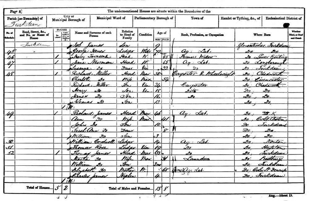 England Census 7 April 1861 : 49, Turkdean Cold Aston Gloucestershire District Northleach : Sub District Chedworth Parish Turkdean Emuneration District 5 Piece 1787 Folio 57 Schedule 49 Page Number 8 8