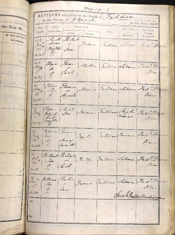 Baptised: Sarah Ann JAMES Born 1852 of Turkdean Was Baptised on 30 January 1853 at Turkdean Father Richard JAMES a Labourer Mother Sarah Ann ROGERS Source: Gloucestershire; Gloucestershire Church of England Parish Registers; Reference Numbers: Gdr/V1/445 Baptisms, 1813-1913 Page 39 Entry no. 306