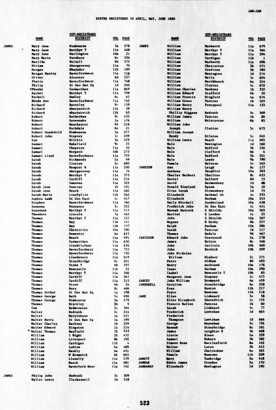 Birth Register William JAMESRegistered at Northleach on June 1860 Volume 6a Page 114