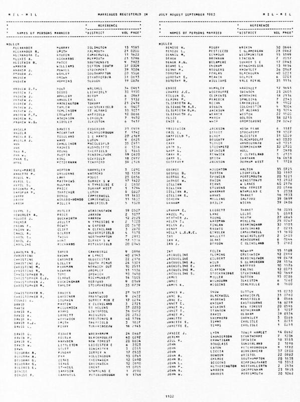 Wedding Register Andrew D F MILLER and Deborah K BOND : Registered at Walsall During September 1983 : Volume 34 : Page 341