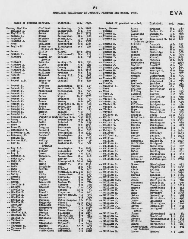 Wedding Register William Alwyn EVANS and Irene GRIFFITHS : Registered at Bridgend During March 1950 : Volume 8b : Page 162