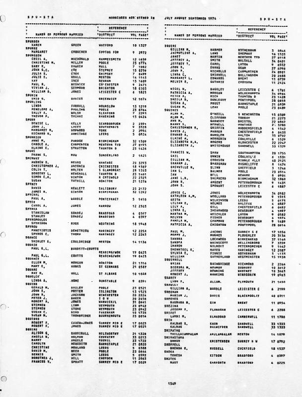 Wedding Register John David SQUIRE and Susan EVANS : Registered at OG During September 1974 : Volume 27 : Page 290