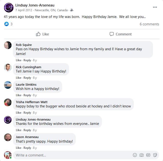 Birth Information given by Linday Kay JONES-ARSENEAU Jamie Claude Arseneau Registered at Canada on 7 April 1971 Mothers Maiden Name JONES