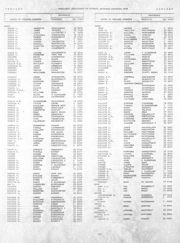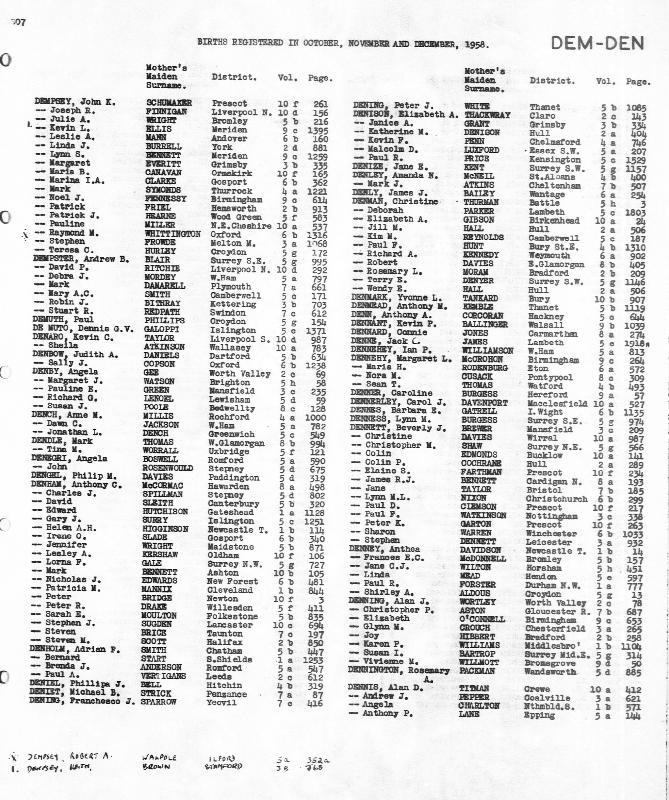 Ibid. Darrell John DENNANTRegistered at Lichfield on 28 December 1983 Volume 30 Page 0943 Mothers Maiden Name JONES