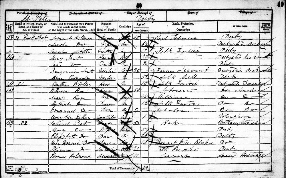 England Census 30 March 1851 : 30, Rioch Street, Derby Derbyshire Parish St Peter Class HO107 Piece 2143 Folio 49 Page Number 38 GSU Roll 87773-87774 38