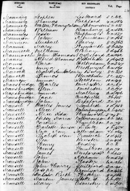 Birth Register Charles MANSBRIDGERegistered at Winchester on July 1855 Volume 2c Page 67