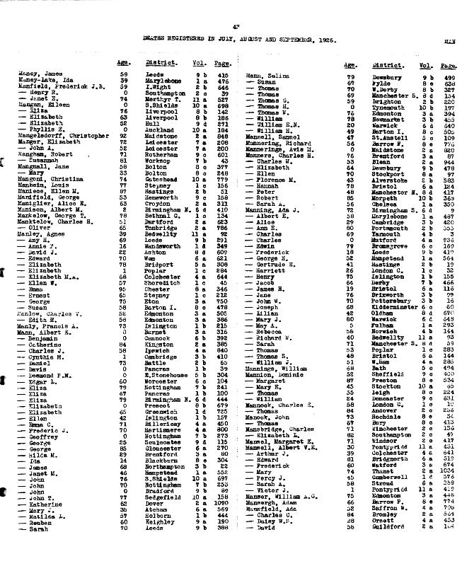 Death Register Charles MANSBRIDGE Born July 1855 : Died September 1926 Registered at Winchester Volume 2c Page 136