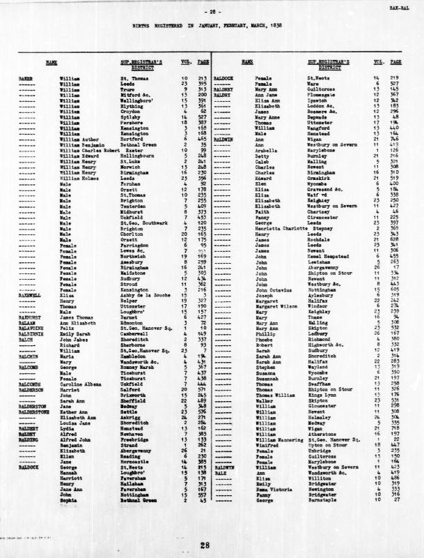 Birth Register Ann BALERegistered at Wandsworth on March 1838 Volume 4 Page 419