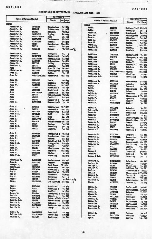 Wedding Register Keith William BROWN and Ethel TILLING : Registered at Grimsby During 21 June 1969 : Volume 3b : Page 665